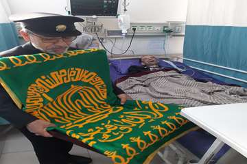 در این مراسم خدام حرم مطهر رضوی با پرچم متبرک آستان قدس رضوی، ضمن دیدار با بیماران و کادر درمان، برای شفای عاجل بیماران دعا کردند و فضایی آکنده از عشق و ارادت به امام رضا (ع) در بیمارستان ایجاد شد.