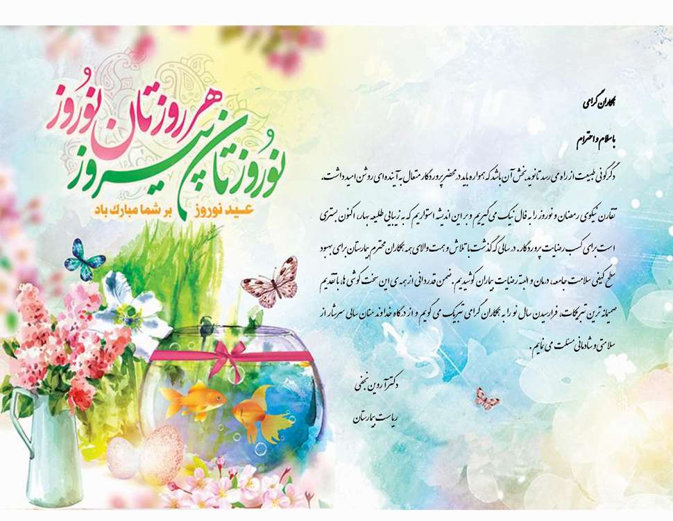 پیام تبریک ریاست بیمارستان به مناسبت نوروز