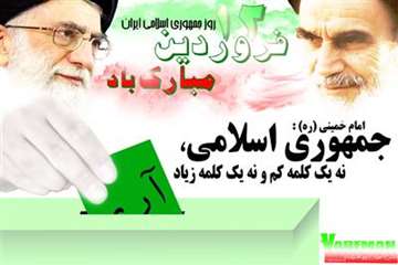 ملت ایران در آغاز دهه چهارم استقرار «استقلال ، آزادی و جمهوری اسلامی» با تجدید پیمان با آرمانهای>معمارکبیر انقلاب اسلامی حضرت>امام خمینی (ره)> ، >رهبر فرزانه انقلاب حضـرت آیت الله خامنه ای>و>شهیدان به خون خفته خود بار دیگر بر حفظ این آرزشها پای می>فشارد و روز «جمهوری اسلامی» را به عنوان یکی از ماندنی ترین روزهای تاریخی این سرزمین گرامی می>دارد.