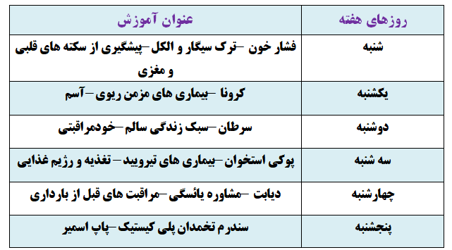 برنامه جامع آموزش همگانی کلینیک مشاوره پرستاری بیمارستان ثارالله