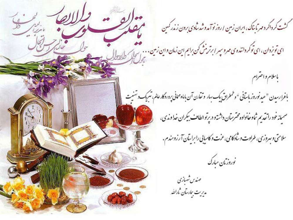 پیام تبریک مدیریت محترم بیمارستان ثارالله به مناسبت فرارسیدن نوروز1403